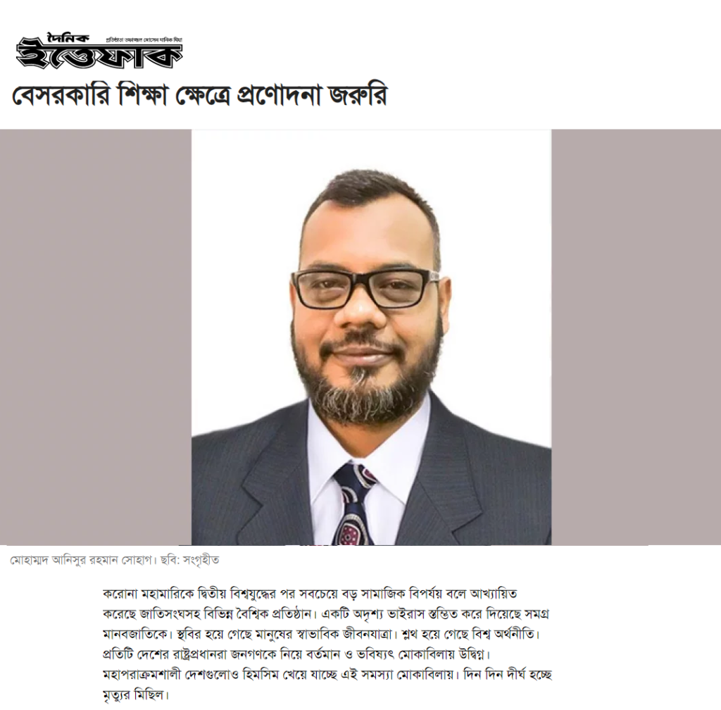 বেসরকারি শিক্ষা ক্ষেত্রে প্রণোদনা জরুরি Publisher : দৈনিক ইত্তেফাক Publish Date : 23/04/2020 Read Full Article Read Full Article