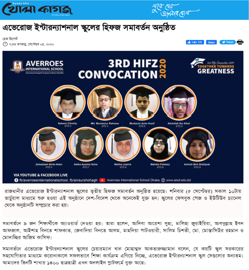 এভেরোজ ইন্টারন্যাশনাল স্কুলের হিফজ সমাবর্তন অনুষ্ঠিত Publisher : KHOLA KAGOZ Publish Date : 05/08/2020 Read Full Article Read Full Article