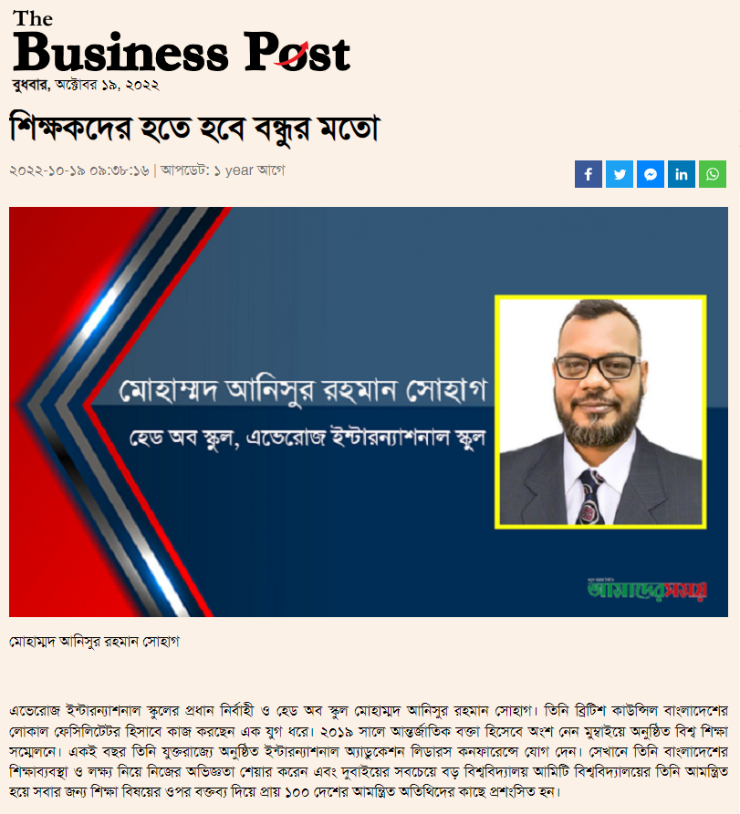 শিক্ষকদের হতে হবে বন্ধুর মতো Publisher : THE BUSINESS POST Publish Date : 07/10/2022 Read Full Article Read Full Article